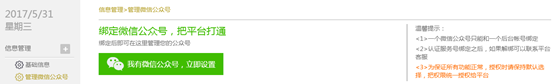 简介之前我们讲过,在获取到预授权码之后,我们需要在自己的网站中设置授权页入口(如下图),从而引导微信公众号管理员进入到授权页,对第三方平台进行微信公众号的托管授权。