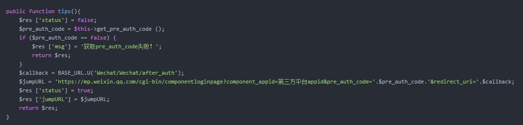 这里,我们对授权页的生成创建一个可供调用的方法,在需要生成的授权页URL的页面进行调用,如: