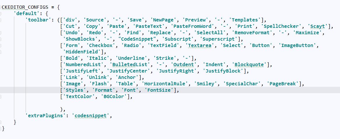以上配置中,“CKEDITOR_UPLOAD_PATH”主要是设置通过ckeditor上传的图片所存放的目录,这里的路径是一个相对路径哟,相对于设置的“MEDIA_URL”。这块有啥具体问题建议还是可以前往django官方文档查看哟~