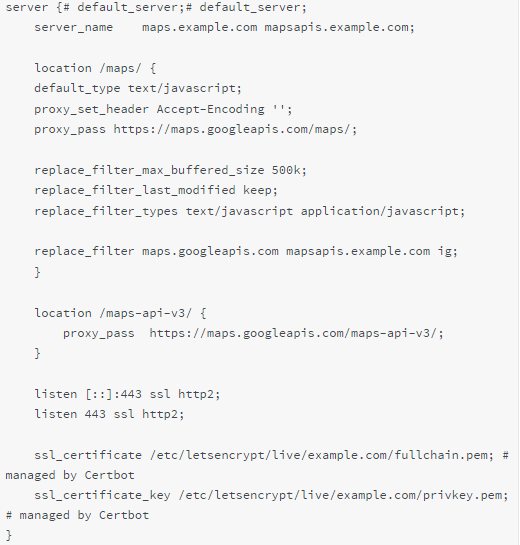 至此,所有的配置已经完成。测试了一下,直接通过访问自己的子域名,就可以调用maps.googleapis.com的地图接口了。